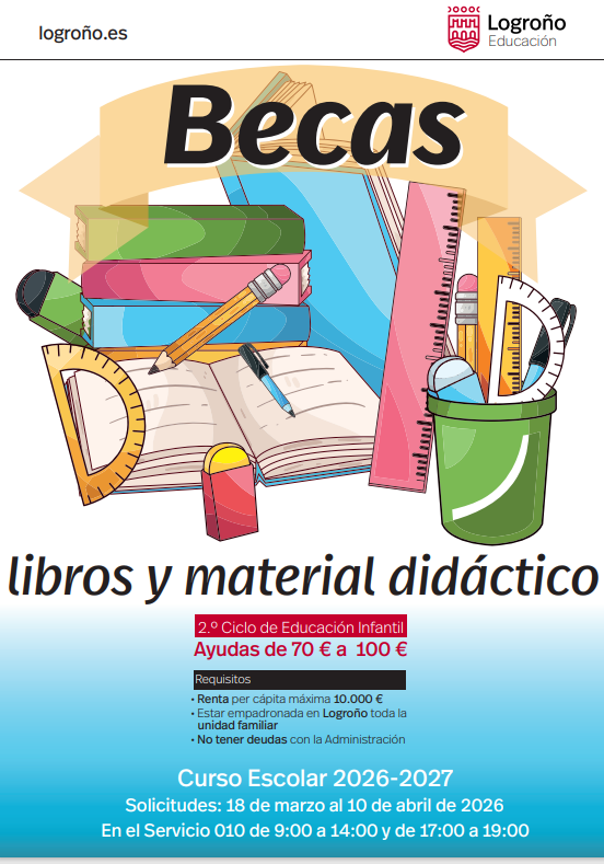 AYUNTAMIENTO DE LOGROÑO: AYUDAS ECONÓMICAS AL ESTUDIO PARA LIBROS Y MATERIAL DIDÁCTICO DIRIGIDAS A ALUMNADO DEL SEGUNDO CICLO DE EDUCACIÓN INFANTIL (3-6 AÑOS)